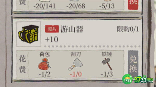 如果不愿意使用刮刀兑换游山器,或者觉得跑地图太麻烦了,玩家也可以直接使用其他的资源获取游山器,这个活动道具的发放和获取途径还是很充足的,能够让玩家在活动中积累更多的资源。