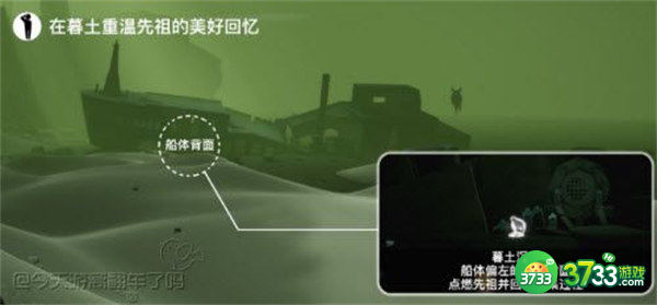 完成方法:此次需要重温回忆的先祖位于暮土沉船,船体偏左位置背面就可以找到这位先祖了。