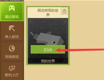 1、首先打开“我的世界”游戏界面,点击“启动”按钮。