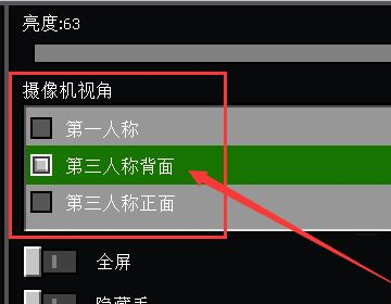 4、点击“摄像机视角”选项中的“第三人称背面”选项即可开启上帝视角。