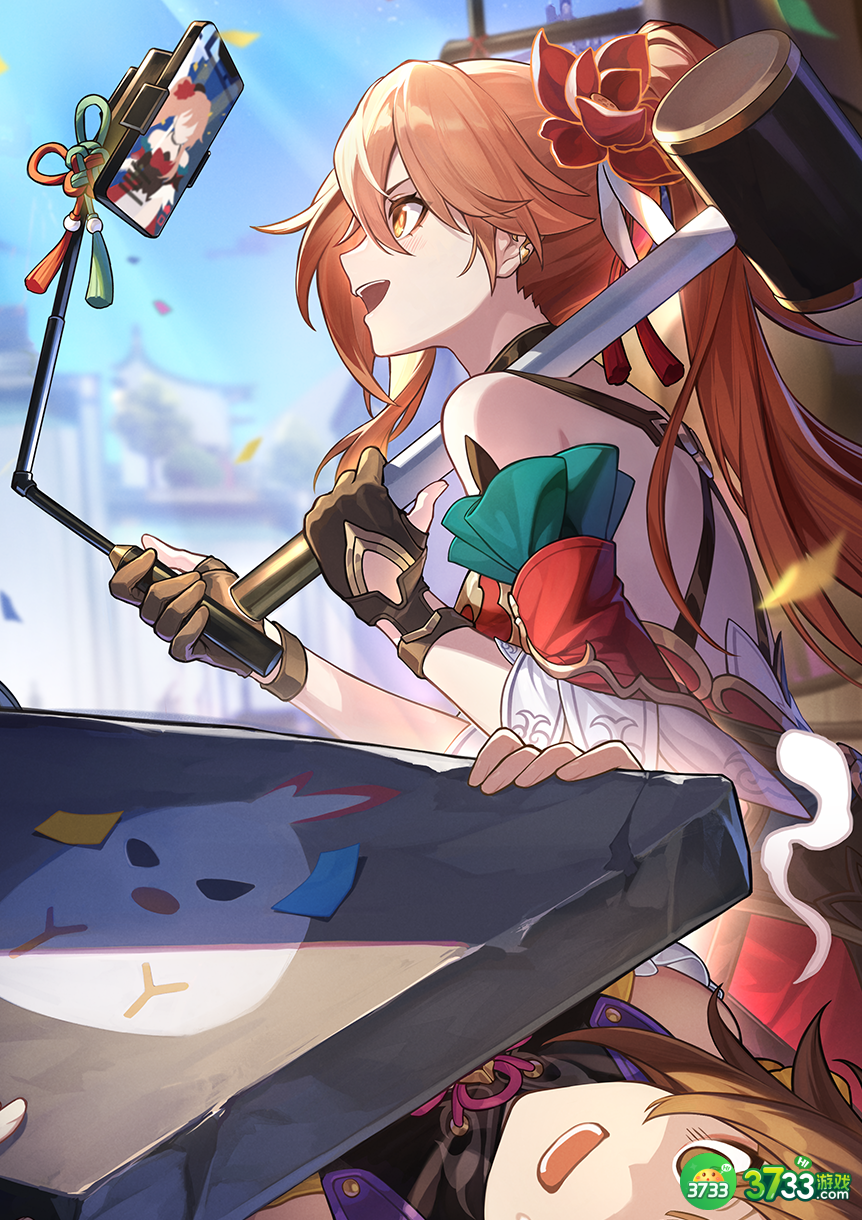 橙发少女兴奋地喊着,对着镜头笃悠悠举起锤子。