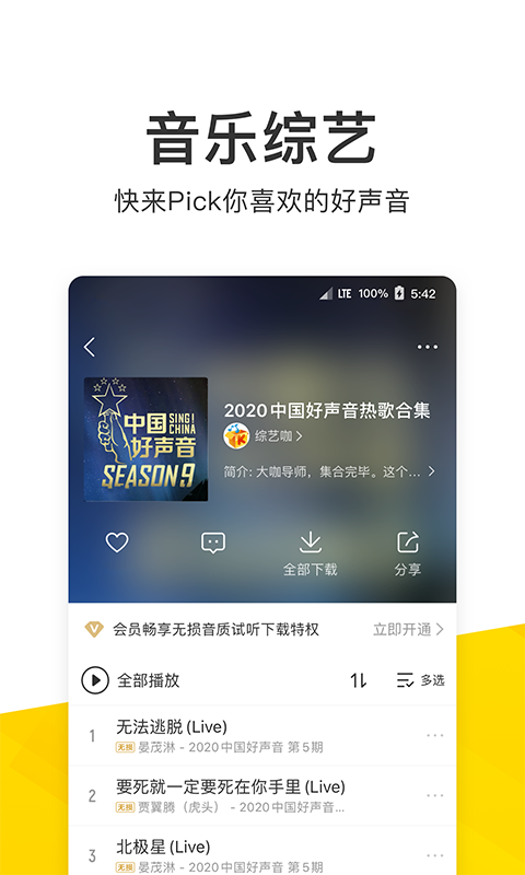 点评:酷我音乐2020最新版畅听无损母带音乐,享HiFi音质