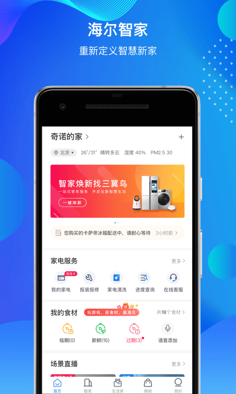 海尔智家APP,你的智家控制中心。不仅可以在线管理智能家电,还能根据你的生活习惯,主动提供智慧服务;