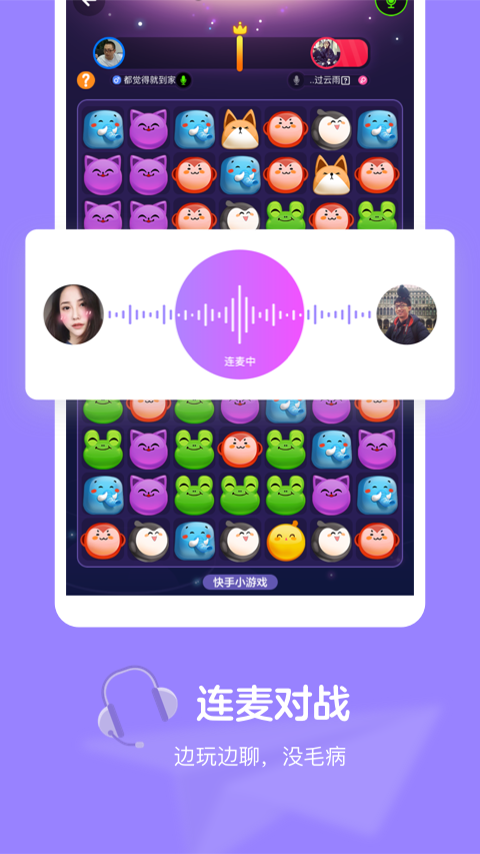 快手电丸app小游戏平台注重社交玩法,需要两个朋友一起进行,一个眼神,一个动作,一键快手电丸,开开心心,超Happy!