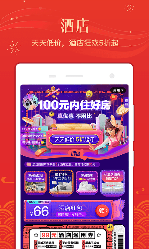 3,酒店:新人三重礼,200元返现等你领!支持国内国外百万余家酒店预订,尽享优惠低价;