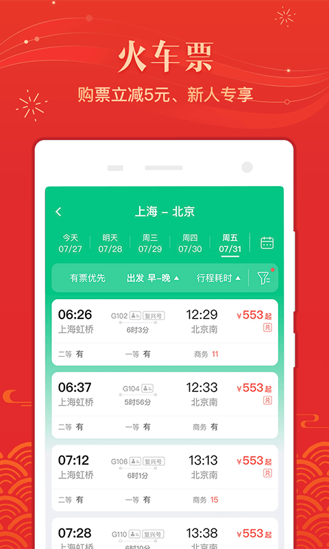 4,火车票:同程旅游软件支持在线抢票、在线选座;快速出票,支持邮寄;更多性化服务,红包优惠!