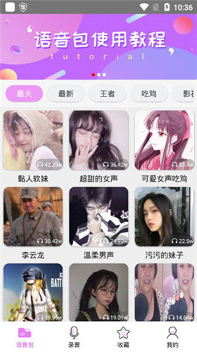 语音包变声器是一款游戏聊天必备的语音变声软件,男声、女声、动漫、影视、搞怪、吃鸡、王者等多种语音包尽在其中,内容丰富,并且支持录音变声,玩法多样,让游戏聊天更具趣味。