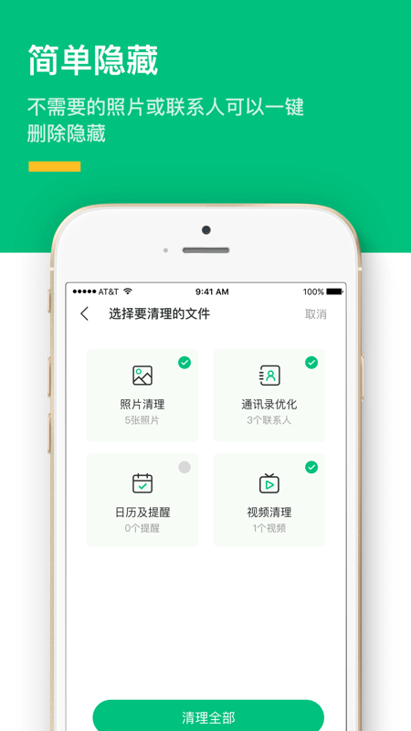 智能清理,扫描相册中相似图片,连拍照片,屏幕截图和相似视频