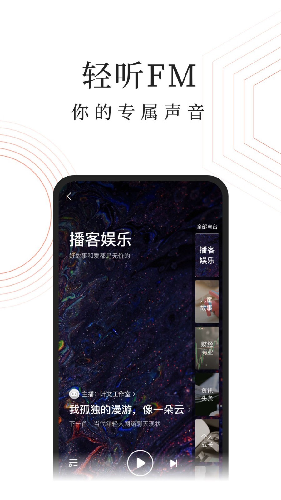 *省流量的音频应用,播放超级流畅,任何环境下均可轻松收听