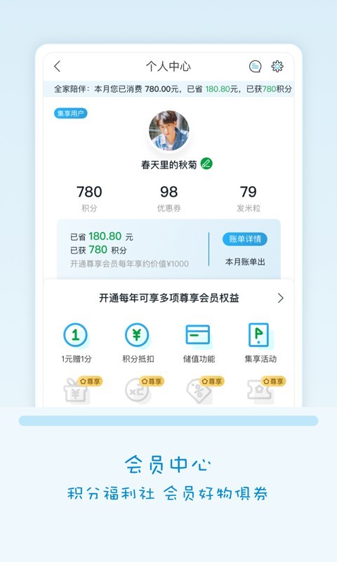 会员中心:下载Fa米家注册登录后,购物时出示会员码即可领取会员积分,积分累积后,可在线下消费时直接抵扣现金哦~