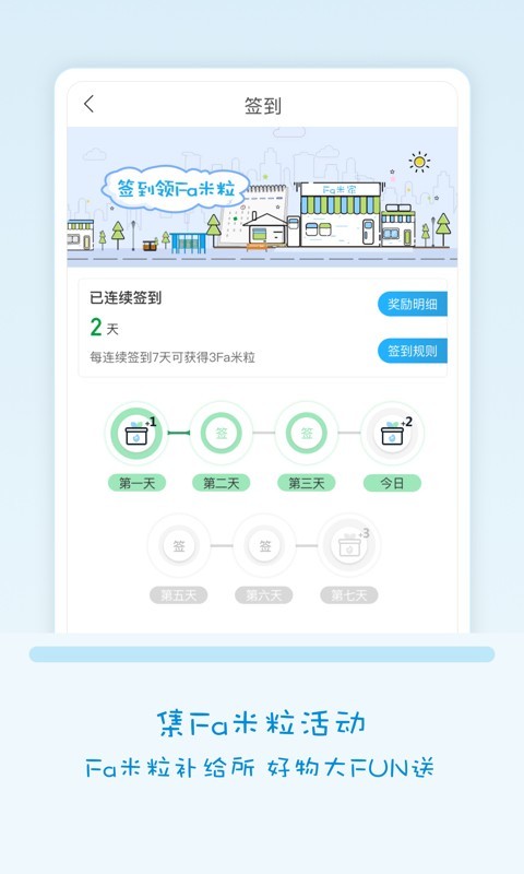 集Fa米粒:新人注册、签到、限时活动及线下消费皆可获得Fa米粒,Fa米粒可在APP内兑换超值商品券,在线下门店出示优惠券即可进行使用(特殊门店除外)