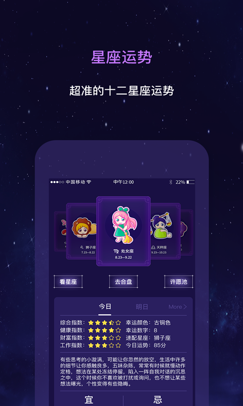 这里有专业、全面、新鲜的星座解读,准确的星座运势星盘测算,更有许愿祈福、诗意起名、有趣的占卜小工具……等你来发现
