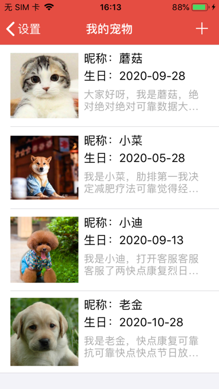 点评:爱宠成长日记,记录你的爱宠成长精彩瞬间实用养宠知识,助你更好的照顾你的爱宠爱宠记录功能,用图片记录爱宠每个精彩瞬间可以添加多个爱宠。