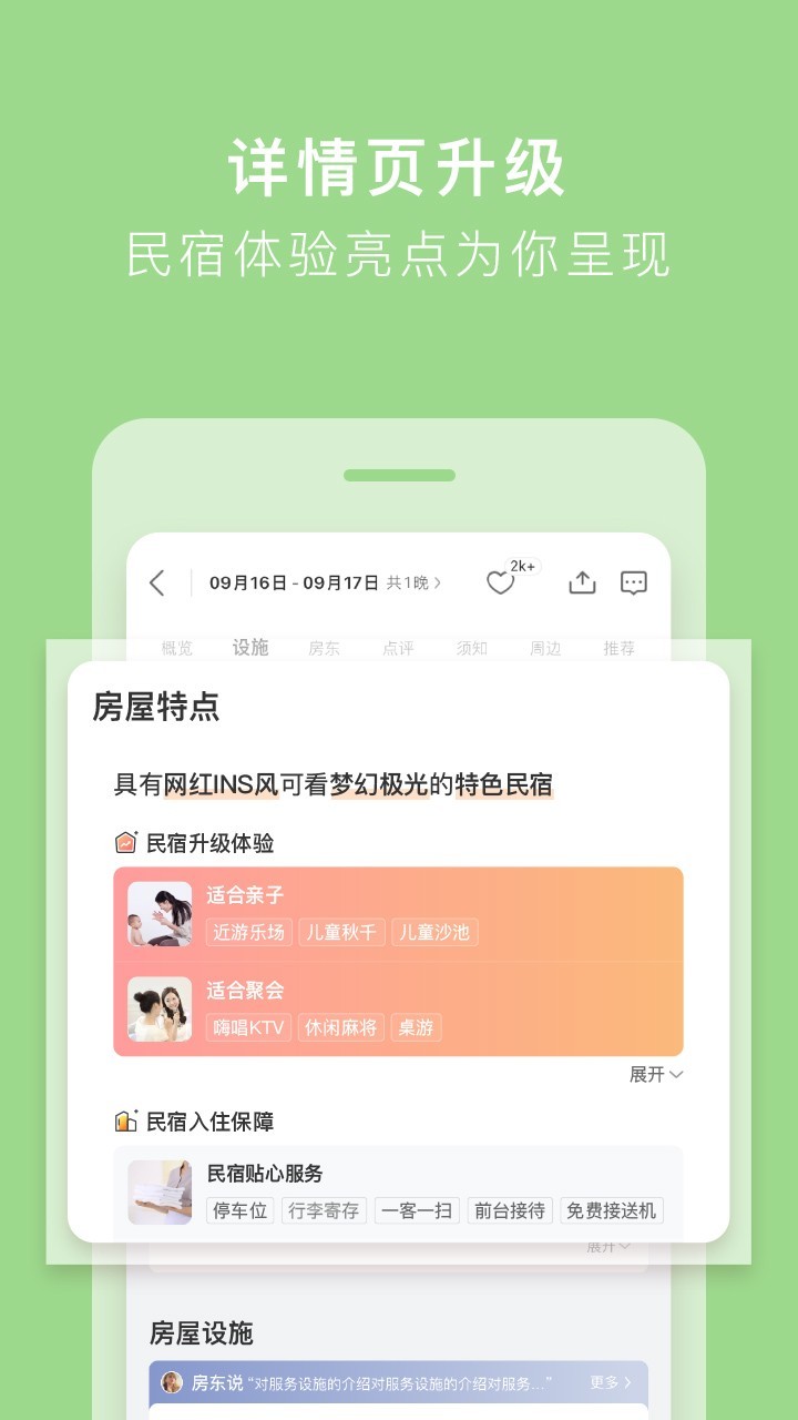 【国内外海量民宿】覆盖全球超100万套房源,不管你是国内游或境外游,你都可以直接搜索,也可按价格、地标、便利设施等快速找到您需要的房源。