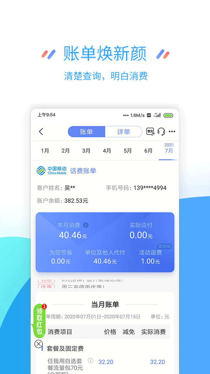 点评:江苏移动手机营业厅,手机话费、余额、流量及业务办理的软件。