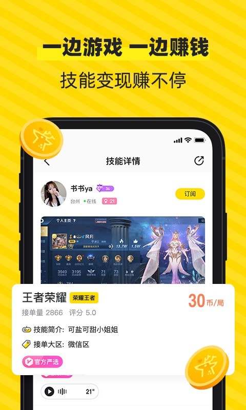带练、上分、吃鸡、发现新技能,通过严格考核的游戏大神将满足你的一切高玩需求!