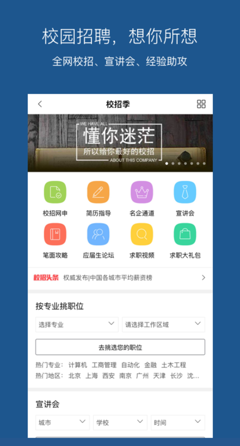 3、校招合作:大街网、应届生求职网、海投网、领英、这一步、梧桐果等10余个专业校招网站。