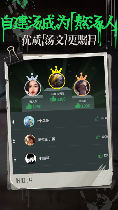 海龟汤可以看成是简化版、娱乐版本的剧本杀,再这里你能够实现不断和好友互动,可以发挥你天马行空的想象力,自定义剧本,自定义剧情。这里不会限制你的想象力,给你足够的发挥空间。