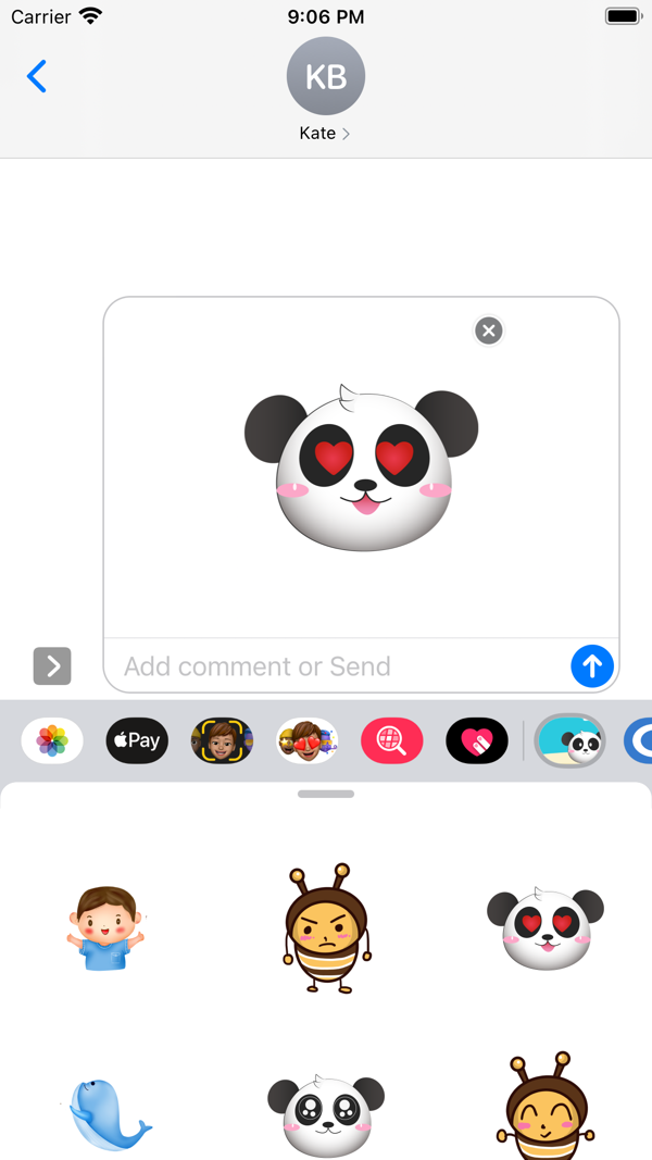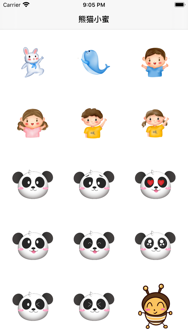 熊猫小蜜蜂是一套非常可爱的多素材贴纸包,可让用户选择不同的贴纸进行传递欢乐,途径:聊天,斗图及收藏等。