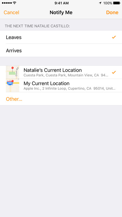 通过“查找我的朋友”,您可以设置位置变更通知,以便在朋友到达机场、孩子放学离开学校或家人安全到家时自动收到通知。您还可以设置通知,将自己的位置变更通知给您的朋友。