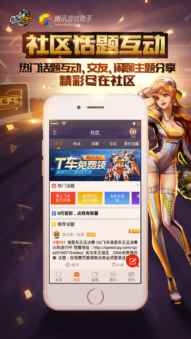 掌上飞车是腾讯游戏出品的客户端游戏移动服务软件,为《QQ飞车》用户提供游戏聊天等聊天室群,同时还有最新福利、资讯、*全活动和提醒、维护提醒及大小号管理等特性服务,为端游用户提供永不离线的游戏体验!