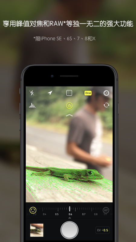 Halide支持用手势更改曝光度和手动对焦。自定义控制来按需调节应用。Halide的专业级工具包括峰值对焦、详细的直方图、自适应水平网格以及对RAW的支持。*
