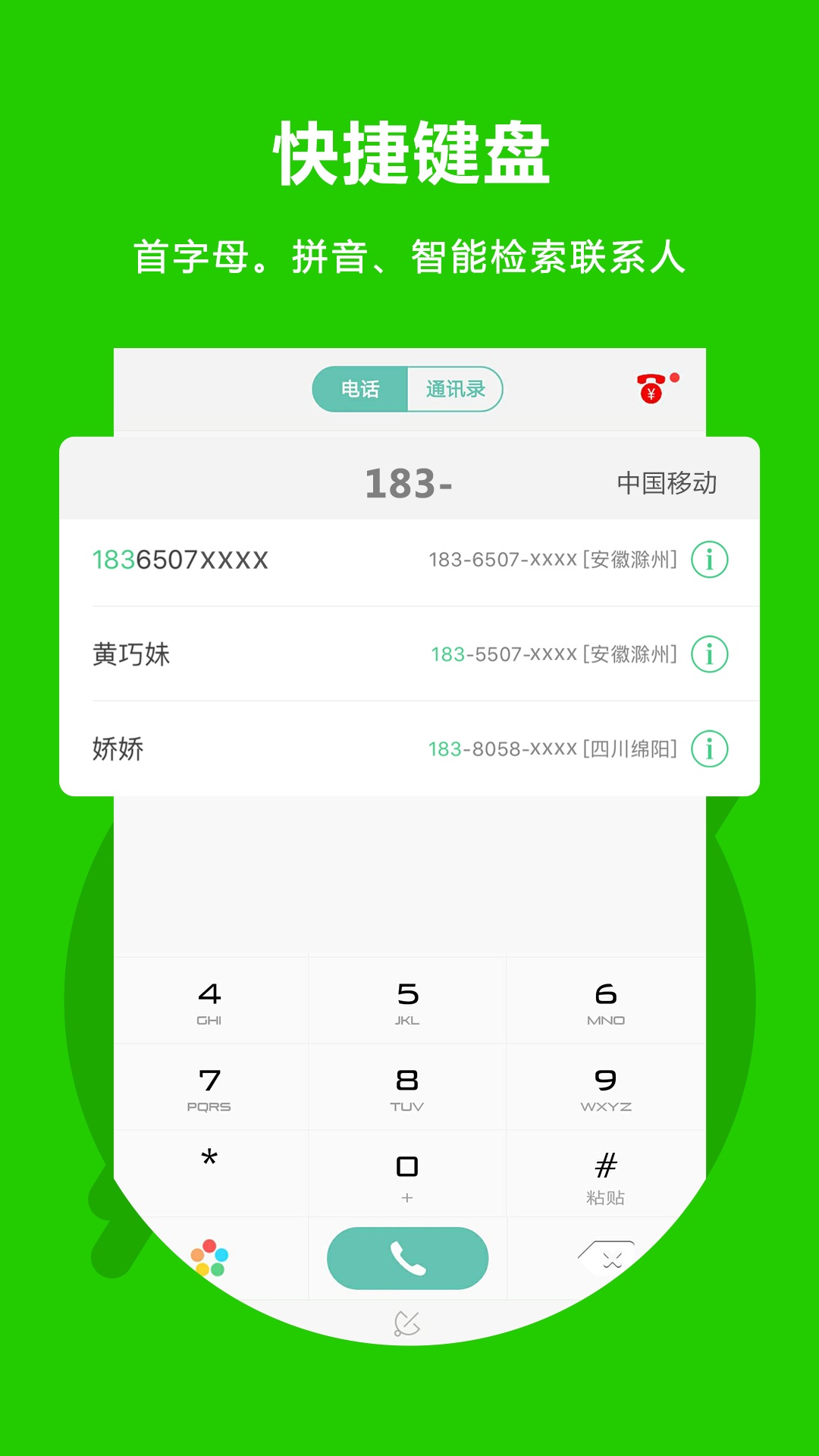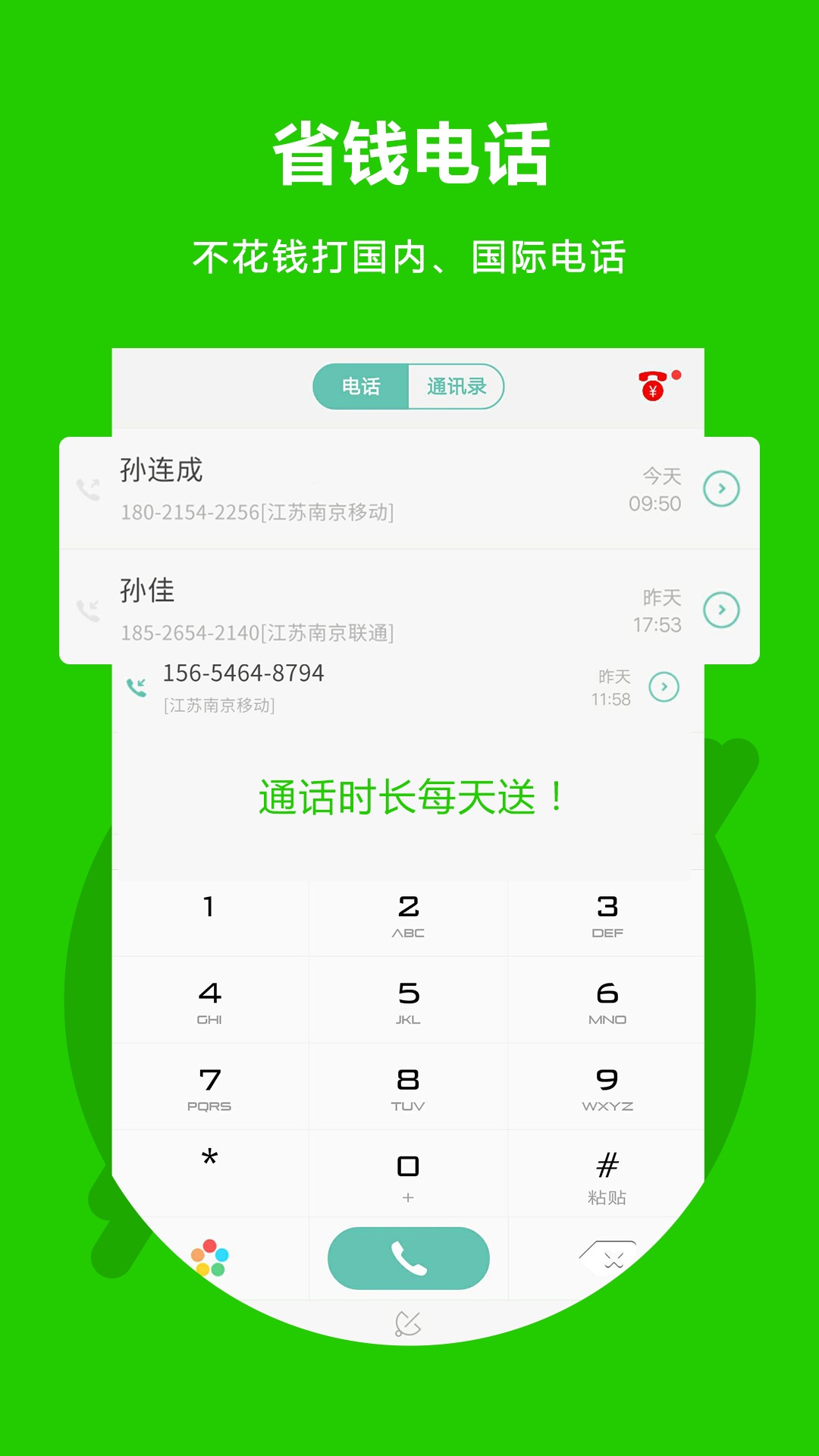 北瓜电话采用智能拨号方式,打电话几乎不用流量,手机网络也能畅聊。