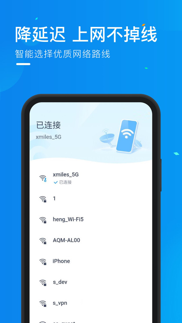 「优质wifi连不停」精选信号佳、网速快精品WiFi,一键连接,上网畅通无阻