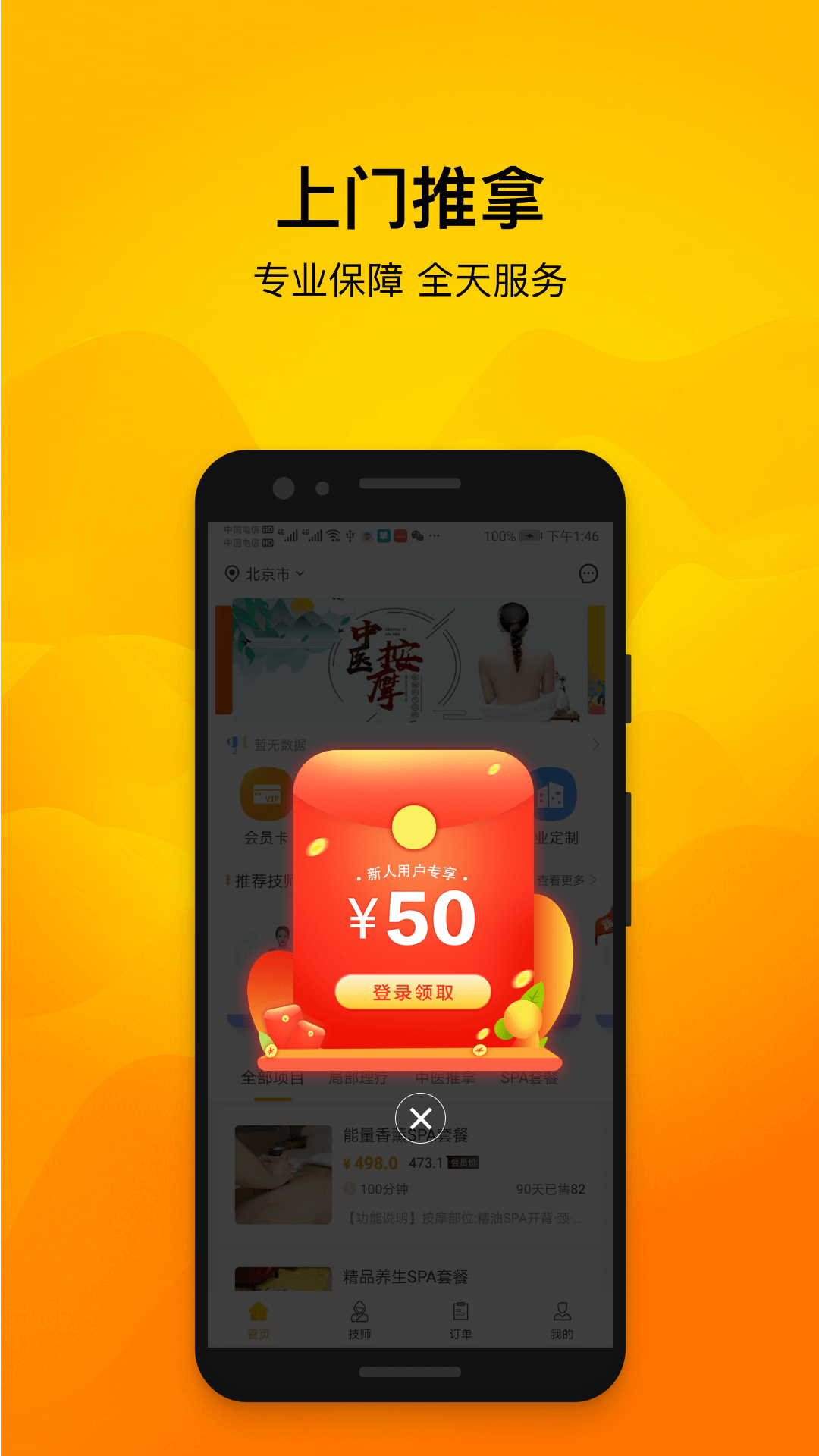 往约主要提供的是上门按摩服务,汇聚上门推拿按摩SPA、小儿上门推拿、中医等品类,为用户提供高价值高标准的养生健康、保健的体验,并且您提供专业、正规、安全、便捷的24小时上门推拿服务。