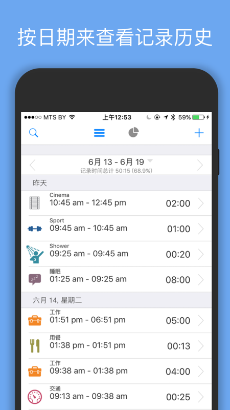 记录每日活动的应用,并给出图表分析,方便你对自己的时间利用情况进行监控和管理。 每天在这个应用程序花上几分钟的时间, 您就能得到每日、每周和每月的统计结果, 并用表格和图形表示出来。使用这些数据您能够方便地对自己的时间利用情况进行监控和管理。, 我们的程序将是每一个人的*佳选择 - 需要处理众多每日例行事务的商务人士; - 需要评价每一天、每一分钟的运动员; - 需要记录孩子们日常活动的家长们; - 任何对记录每日活动并对时间的利用情况加以优化感兴趣的人. 程序功能 - 简单直观的界面 - 多项活动同时追踪 - 各项统计数据及其饼状图和其他图形 - 生成多种数据格式报告(CSV and HTML) - 备份与回复 - Twitter集成- 按需自动广播你的当前活动 - 提供用于表示类别的大量图标和可选颜色 - 支持皮肤主题 – 选择你想要的界面!