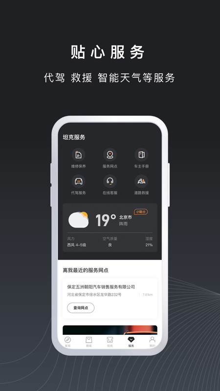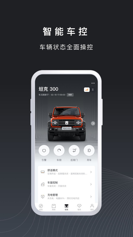坦克TANK APP,长城汽车官方出品。纵享越野,智享科技!在这里,官方资讯一手掌握,互动社区开怀畅聊,随时随地智能控车,专享省心车主服务。让试驾、购车、用车一体化服务更轻松更便捷。