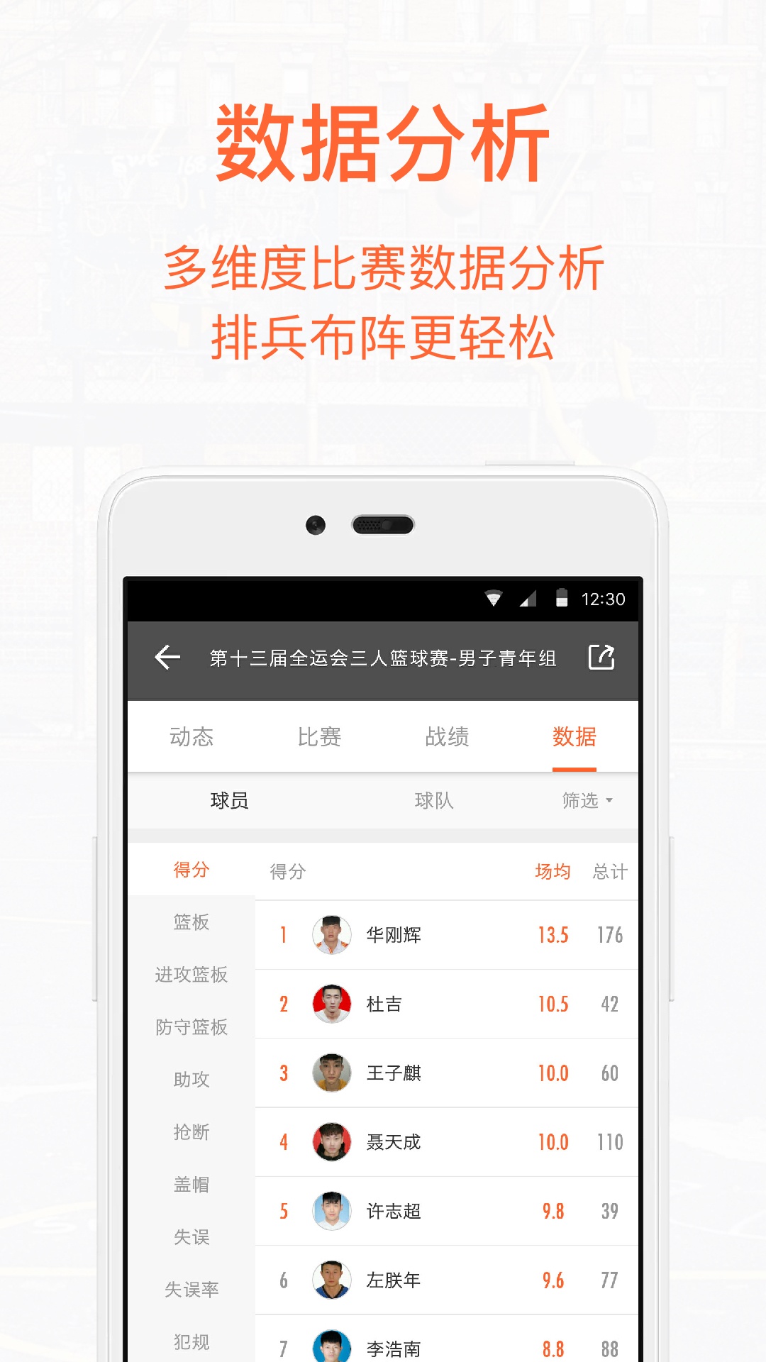 1.为普通篮球爱好者提供专业技术统计。