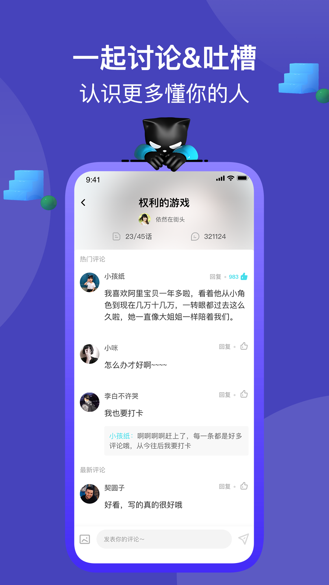 小说也可以发弹幕啦,文章中的每句话你都可以发表评论,也可以看到其他的人的评论;神吐槽、键盘侠、剧透党在这里应有尽有!