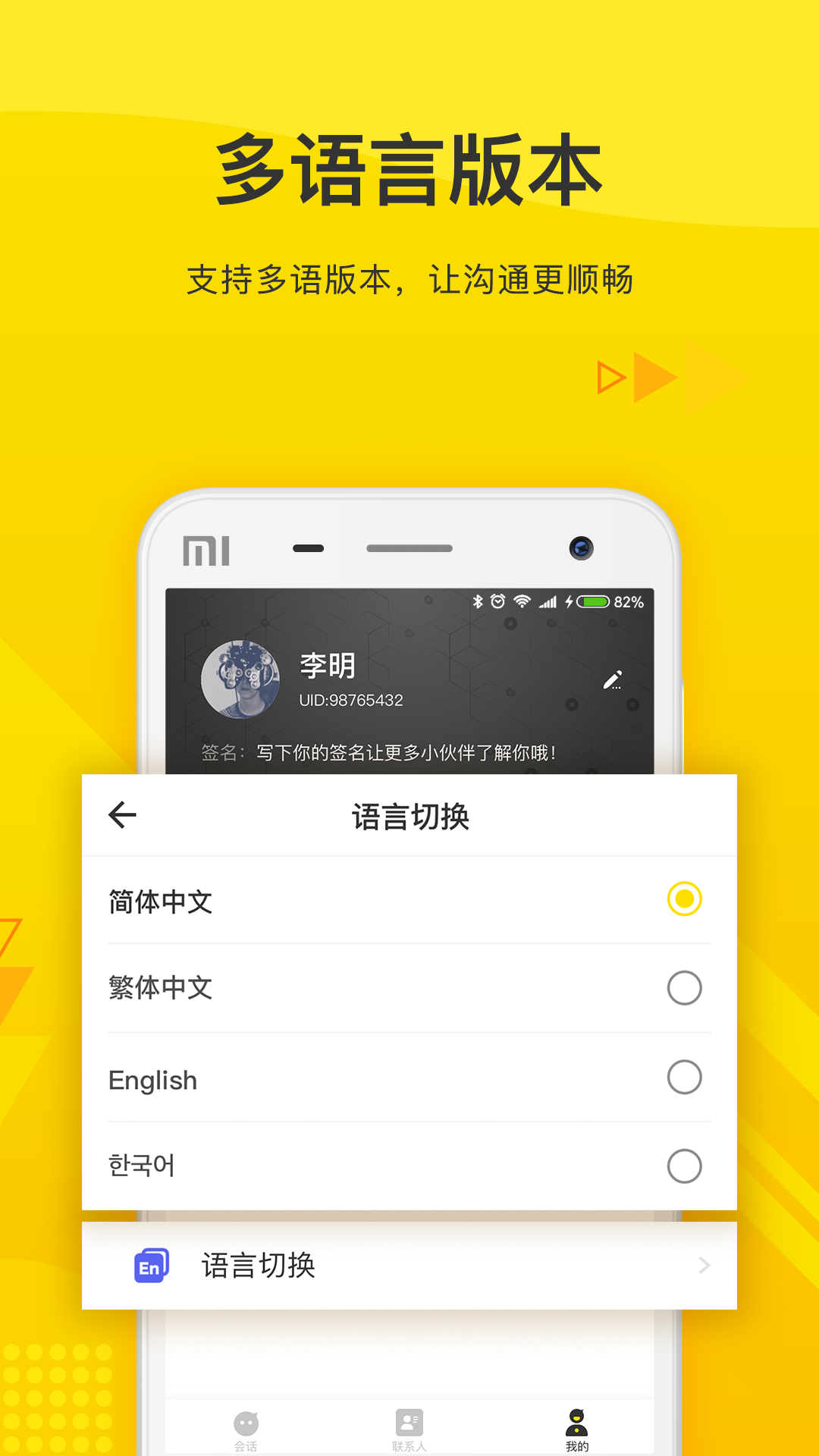 * 多媒体消息:支持发送文字、图片、短视频和语音消息