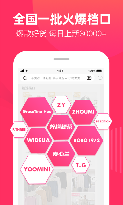 一手精选优质合作档口超1万家,十三行如GRACETINA HOO、DS、CZ Zhang、漾莲、DW,UUS如zhoumi、coline,沙河如vivi's type、柠檬绿茶、mi2、momostyle,杭州如LION&CAT 、FST、A_MIGO、聿欣、MISS,深圳南油110栋等等,货源风格类型全覆盖,低中高档全都有,在一手,总有你想要卖的货。 拿好货,上一手!全国*聪明的服装店主和你一起拼!