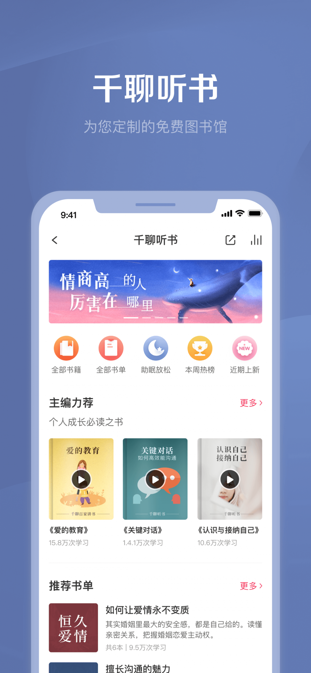 更适合现代人的学习方式:上下班路上、休息间隙、睡前、地铁上、公交上、上厕所、你可以随时听书看书,获得知识和陪伴。