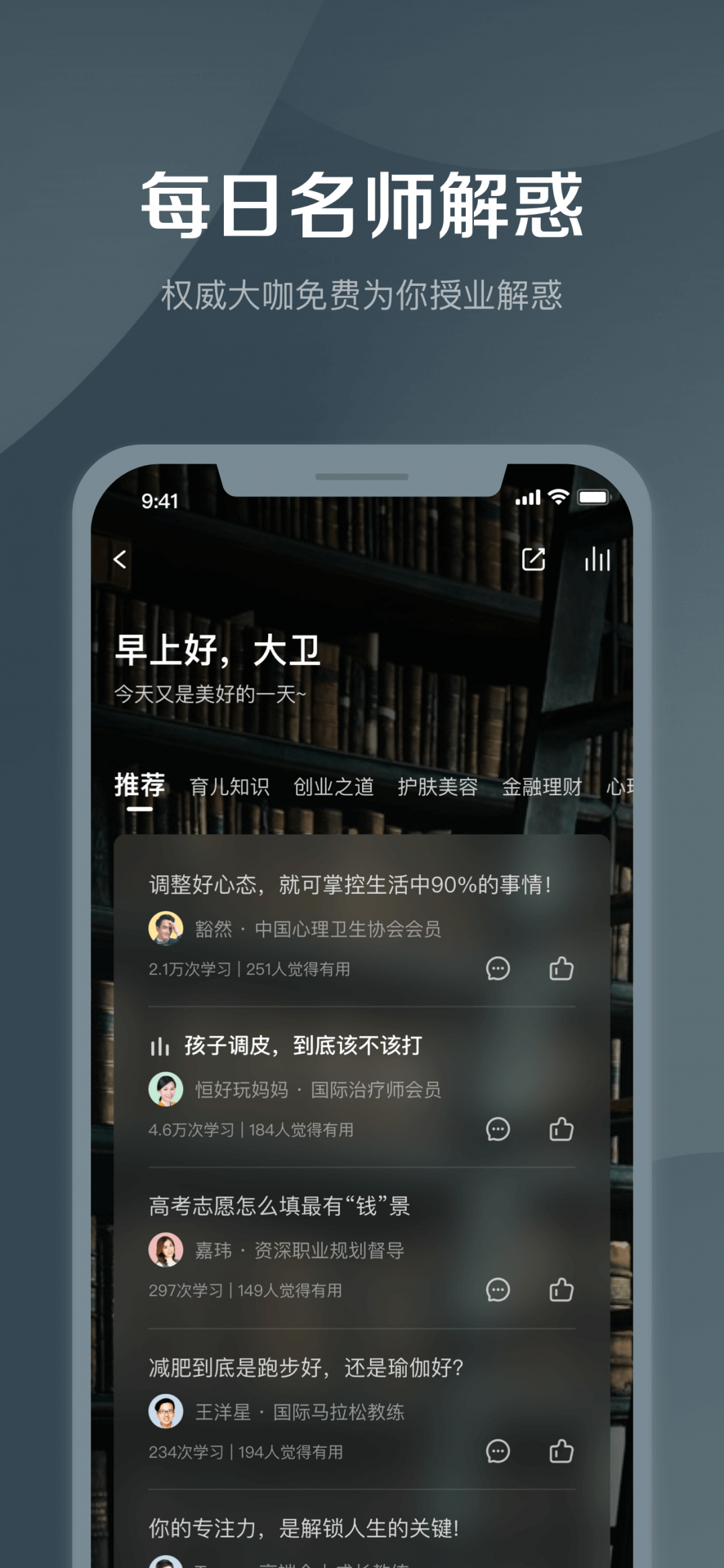 精华内容,解决你的问题困惑:课程覆盖22个类目,汇聚20万课程每个类目下10000的精华内容1000各种主题优质直播间,想学的都能找到;