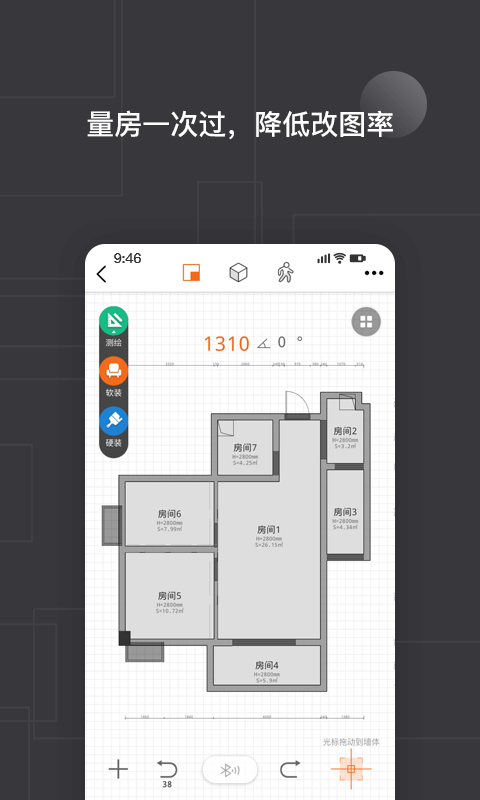量房快速出CAD图,2D、3D、漫游图自由切换,客户需求方向现场确认,减少沟通成本,避免无效返工。