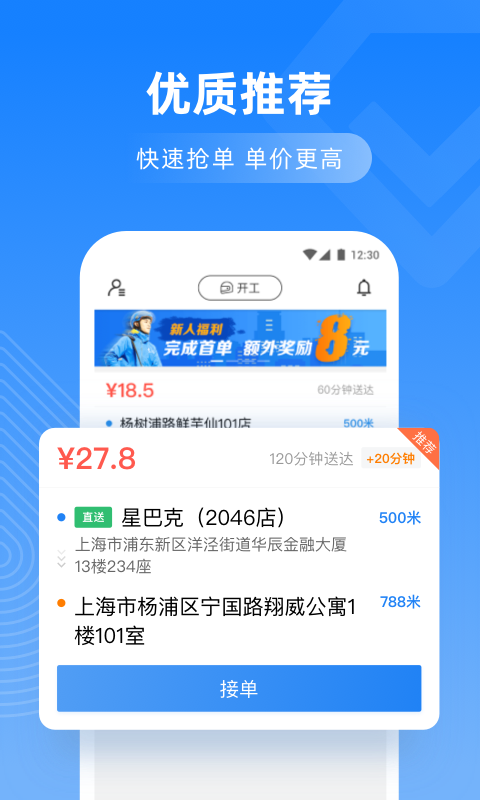 1.赚钱任务:餐饮外卖、鲜花等送货服务