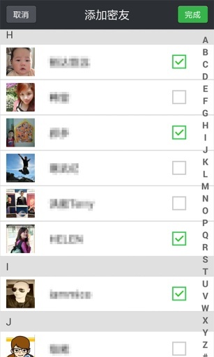 【微信密友】能够根据微信的通讯录设置包括聊天群在内的密友,并设置密码保护。通过摇动手机或锁屏等便捷方式直接隐藏微信密友和聊天记录。