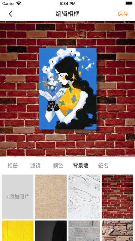 点评:为您的作品提供*感的相框,卡纸,还可以把您的画框挂在家中墙上,艺术画廊,甚至把照片放上广告牌上,为您提供超过100种不同风格的素材,给您*专业的装裱服务,让您的作品锦上添花。滤镜,背景,颜色,自定义裁剪,更多种类的素材均已上线。