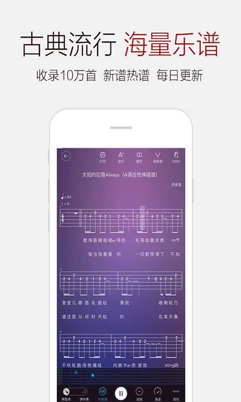 依托弹吧音乐网的乐谱资源下载优势,打造超过10万首的钢琴谱、吉他谱谱库,你想弹的都在这里哦!
