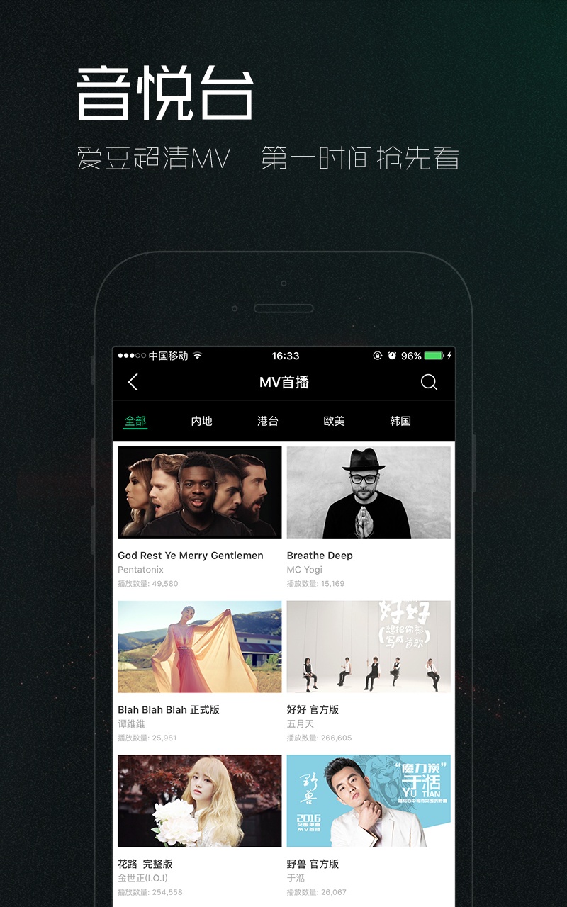 1、音悦台是一款主打高清MV的免费音乐应用,拥有国内*大的正版高清MV曲库;
