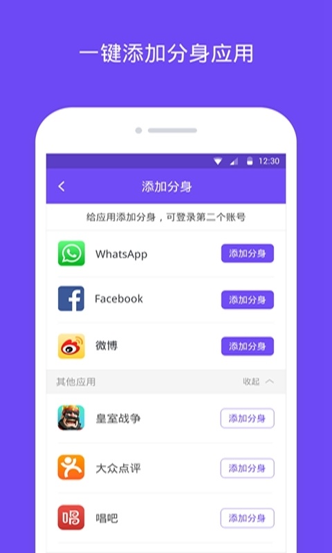 一部手机,两个账号;应用分身,游戏双开!