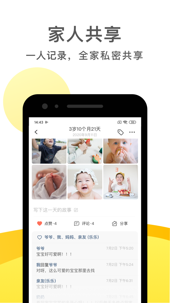 - 亲友圈中分享宝宝的成长历程。
