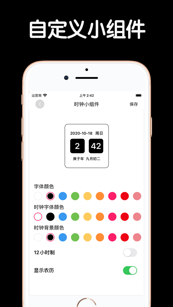 3、可自由控制时间的显示方式:秒,日期,星期,农历可以自由控制显示隐藏