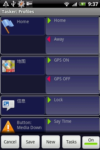 Tasker app是一个让系统根据用户定制的”配置文件”(Profiles),在特定的”背景”下(Contexts),执行指定”任务”(Tasks)的软件,除此之外,它还提供”可供点击”的(Clickable)或”定时运行”的(Timer)桌面”插件”(Widget)
