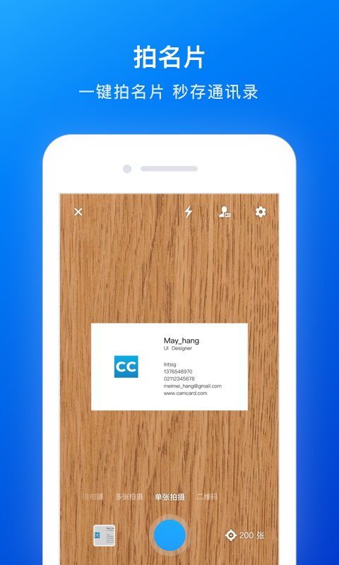 【手机拍名片,1秒存进通讯录】