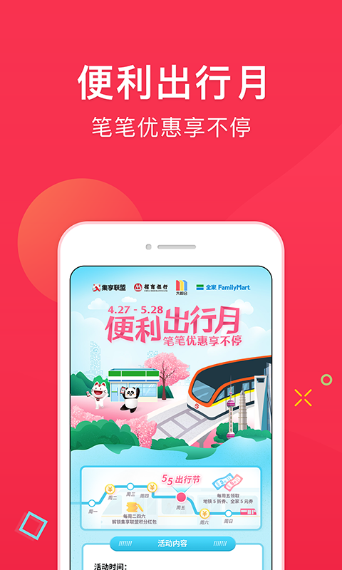 一卡同时集成多商户会员卡(集享联盟特约合作商户),卡片管理更简单,打造便利生活;