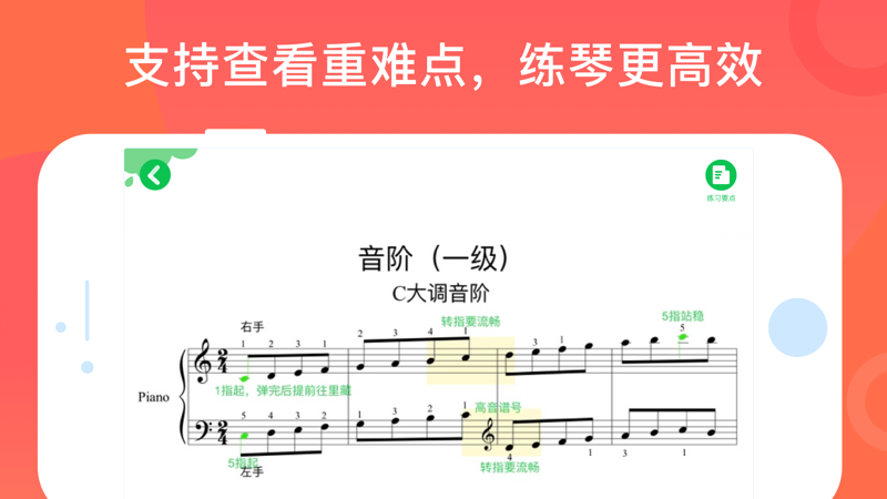 钢琴智能陪练是一款专注于钢琴陪练的应用,可以带着孩子练琴,智能纠正错音、节奏等问题,每天24小时陪练,无需约课。孩子自己就能弹对,无需大人帮忙。孩子跟着科学的方法练琴,错误少,进步快,兴趣高!